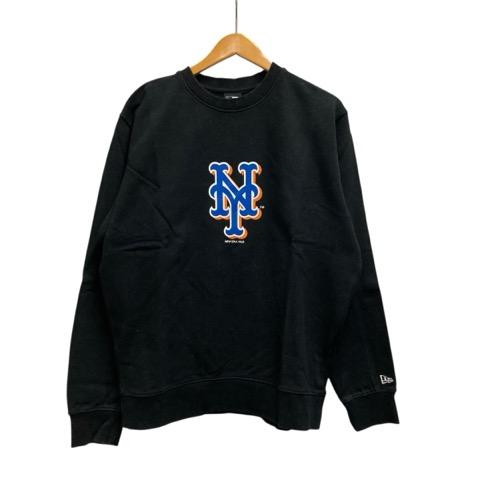【中古】ニューエラ NEW ERA トレーナー 長袖 クルーネック プリント コットン L 黒 ブラック オレンジ 青 ブルー 白 ホワイト メンズ