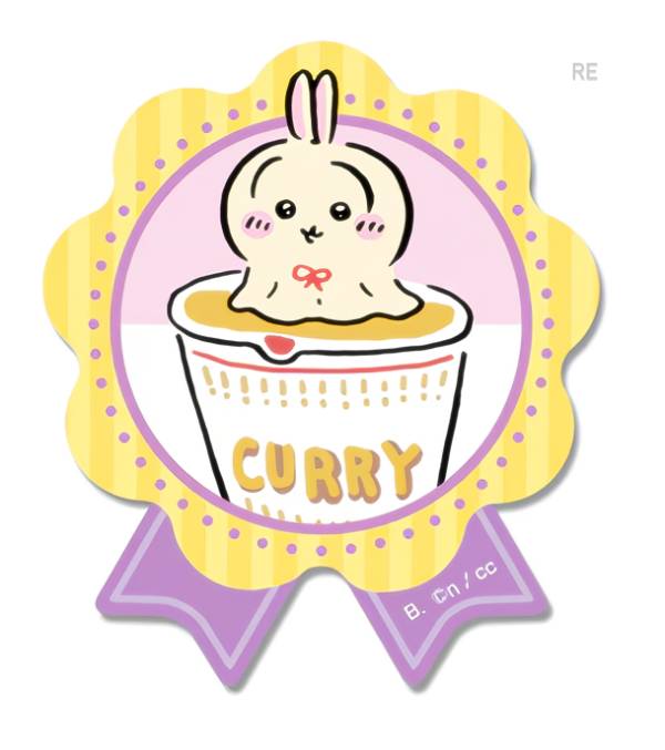 【うさぎ(カレー味のカップヌードル) (エンブレム型) 】 ちいかわ ダイカットステッカーセット5 ※ステッカー1枚のみ
