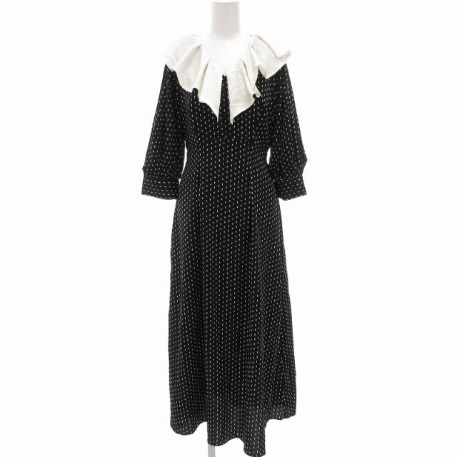 【中古】ダズリン dazzlin 美品 ラッフルカラーフレアワンピース マキシ ロング F 黒 ブラック /UO レディース