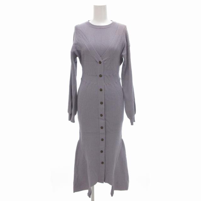 【中古】リリーブラウン Lily Brown レイヤードニットワンピース フレアシルエット マキシ ロング F ラベンダー /UO