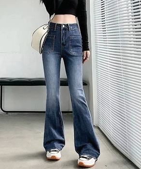 ブーツカットデニム おしゃれ フロントポケットジーパン カジュアルきれいめ 細見え ハイウエストジーンズ美脚脚長 着やせレトロ風ジーンズ ビンテージ デニム カジュアルパンツ女