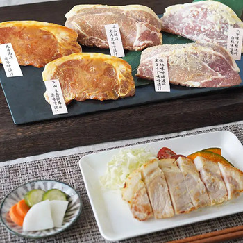 五国の各地域で造られた味噌、兵庫県の地酒に国産豚を使用した、“兵庫のおいしさ”をお楽しみいただける「豚肉の味噌漬け」です。