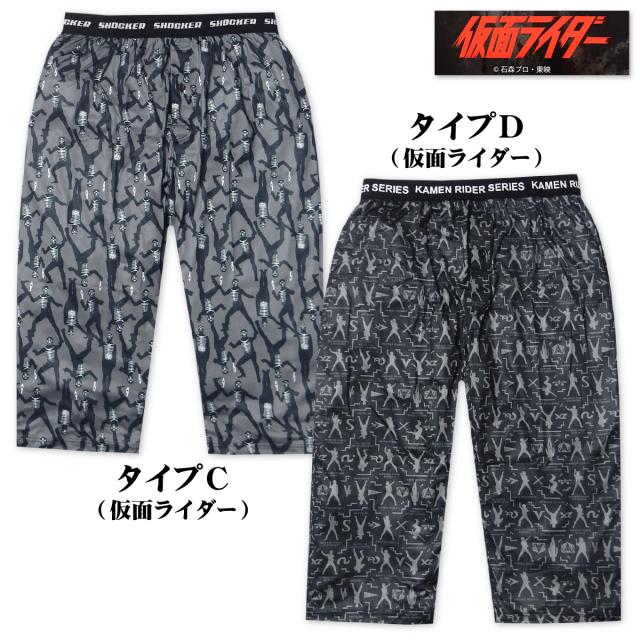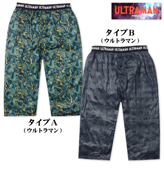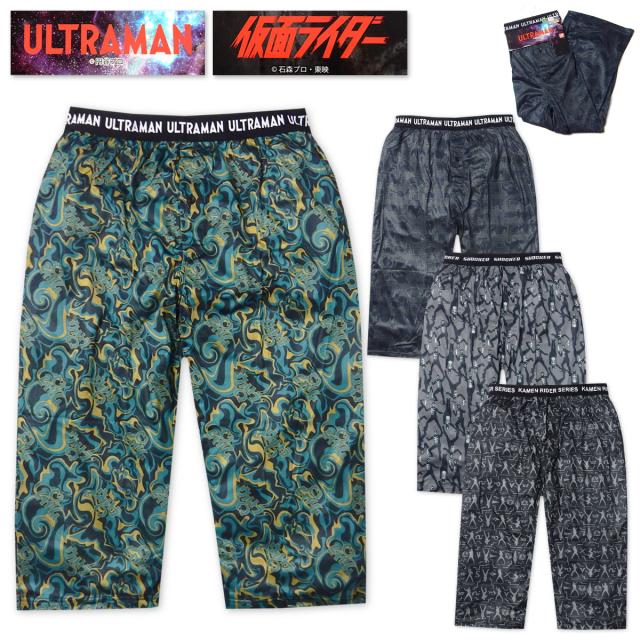 【送料無料】紳士 メンズ 7分丈 ステテコ ウルトラマン 仮面ライダー 前開きボタン エステル ストレッチ 薄手 総柄 ボトムス M L LL yg-2901【メール便対応】