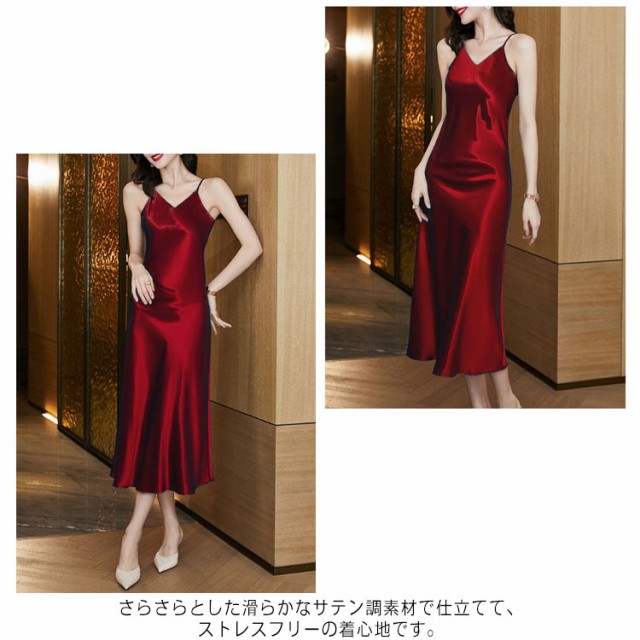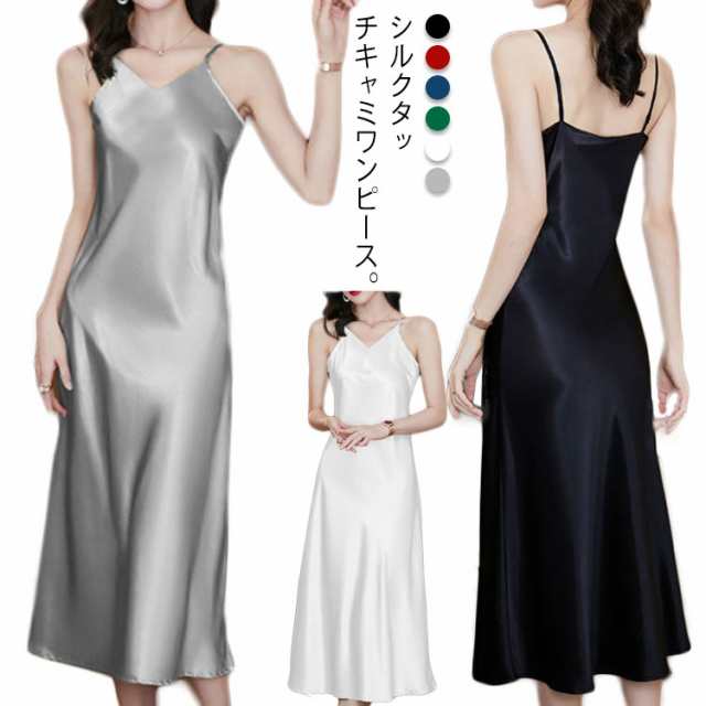 ロングワンピース レディース シルクタッチ Aライン きれいめ Vネック キャミワンピ キャミワンピース ペチコート 送料無料 シルク調 ノースリーブ ワンピース 光沢 インナーワンピース ドレス 無地 春夏 ロング丈 涼しい ゆったり おしゃれ セクシー カジュアル 冷感