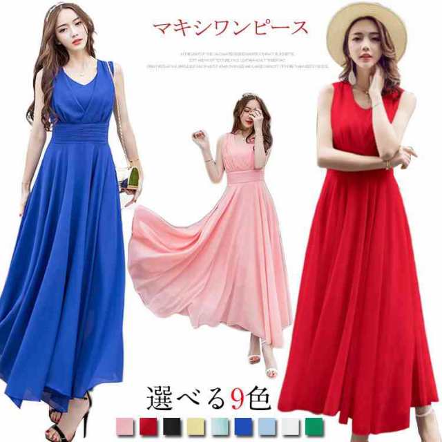 ワンピース マキシワンピース シフォンワンピース ドレス マキシ丈ワンピース 通勤 結婚式 白 ホワイト 春 ロング レディース ノースリーブ フォーマル フレア