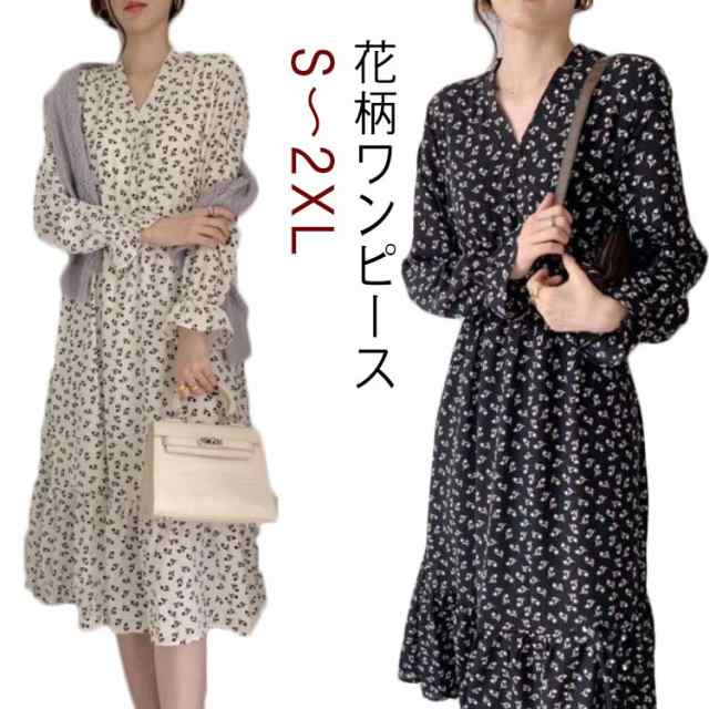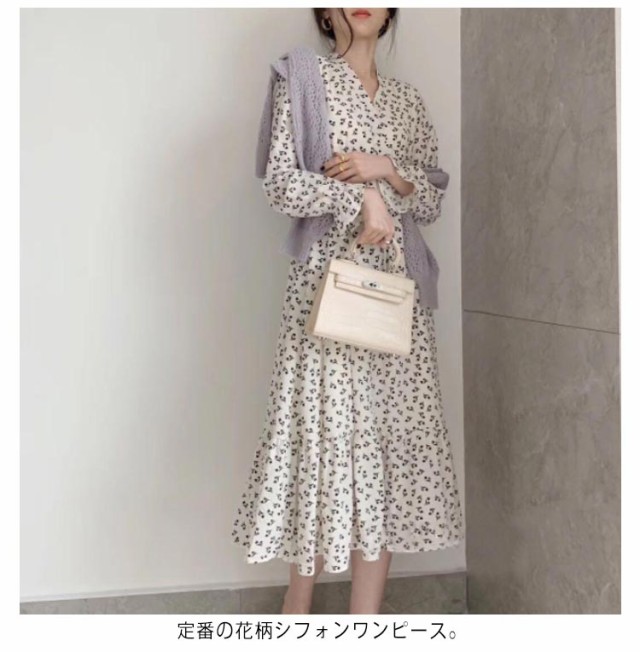 春 長袖 シフォンワンピース Vネック きれいめ ワンピ ロングワンピース 花柄 ロング 夏 H型 ロングワンピ レディース ワンピース シフォン マタ二ティ マタニティワンピース Vネック