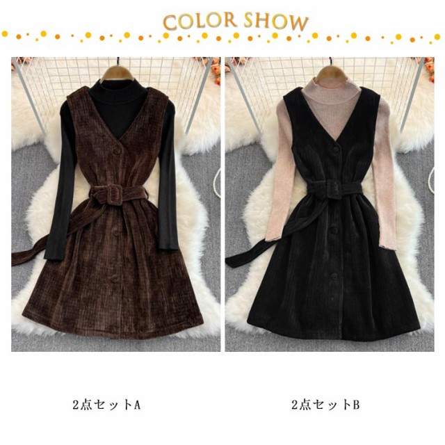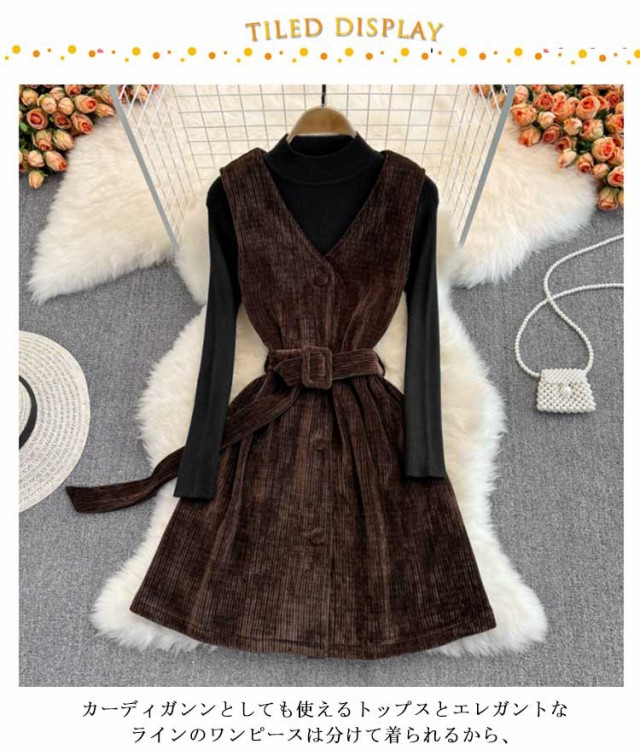 送料無料 ニット セットアップ レディース コーデュロイ ワンピース ニットトップス 2点セット ニット コーデュロイワンピース リブニット 無地 シンプル 上品 通勤 普段着 お洒落 謝恩会 披露宴 同窓会 女子会 結婚式
