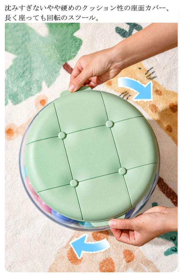 | フタ付きなのでゴミ箱としても、収納としても。大人から子どもまでスツールとしても使用できます 広口でお子様がおもちゃを出し入れたりする時とても便利。 PET素材なので、収納物が一目瞭然。おもちゃを探す手間も省き、お部屋の印象をぱっと明るく楽しい印象に変えていただけます♪ ぬいぐるみなどおもちゃを可愛く見せる収納できるから、お子様も進んでお片づけしたくなるでしょう。 軽くて持ち手付きで子供でもラクラク持ち運べます♪ 沈みすぎないやや硬めのクッション性の座面カバー、長く座っても回転のスツール。 耐荷重100kgで、子供から大人まで利用いただける収納付き腰掛け。 | |