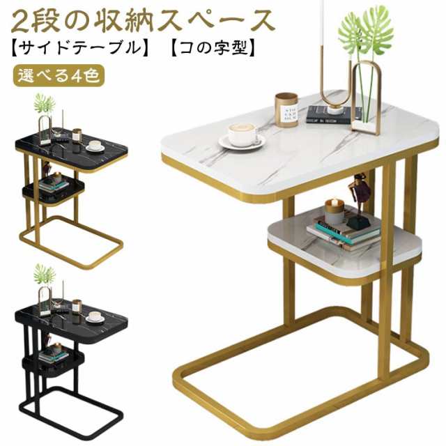 サイドテーブル 2段 北欧 おしゃれ 大理石調 ナイトテーブル コの字型 テーブル ベッドサイドテーブル ソファーサイドテーブル コーヒーテーブル ベッド ソファ ソファー ミニテーブル リビング 収納 シンプル モダン サイドデスク 省スペース 小さい スリム 寝室