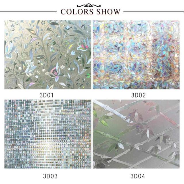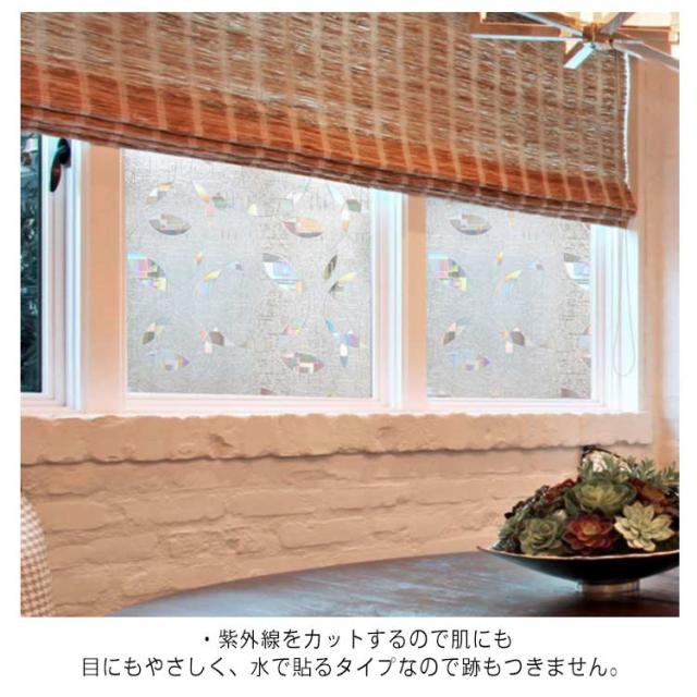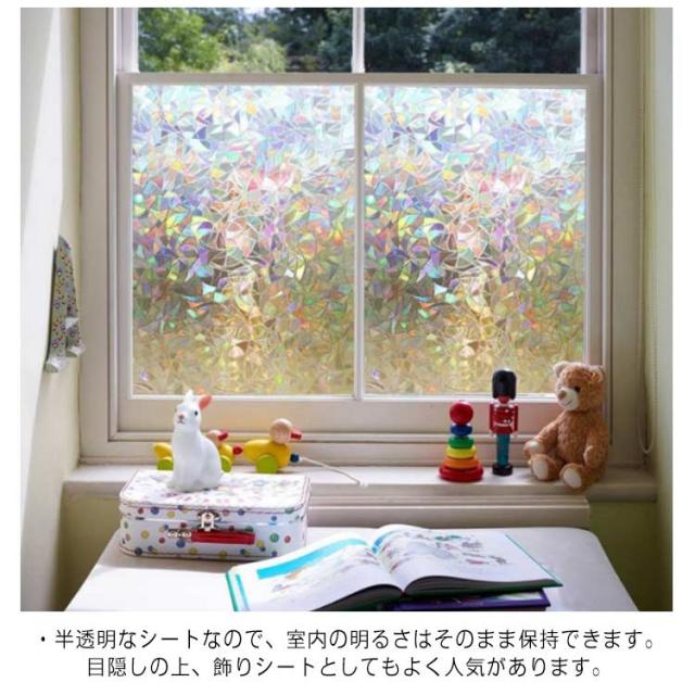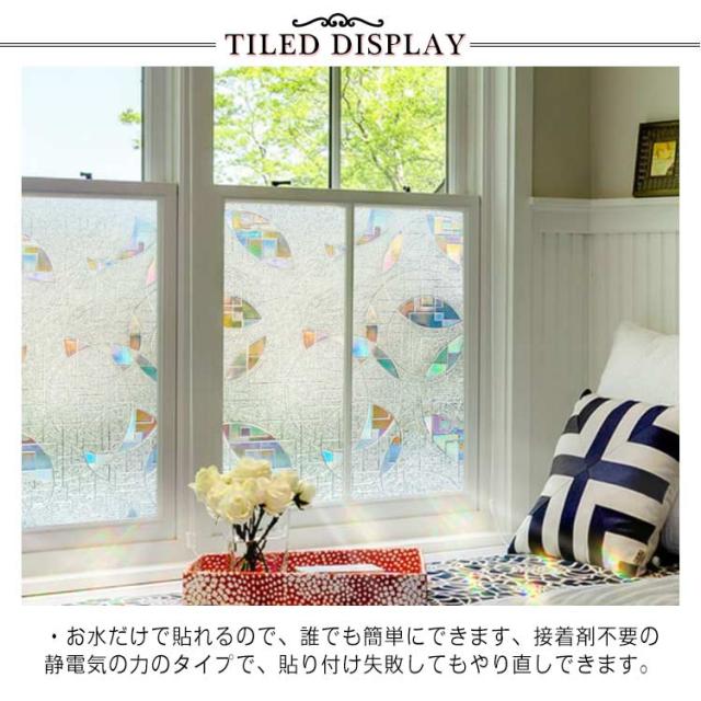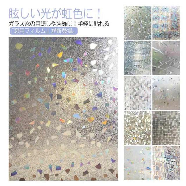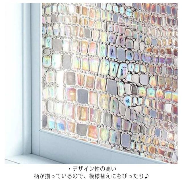 窓用フィルム 目隠しシート ガラスフィルム 3D 静電気 45×200cm 貼るだけで モザイクガラス ステンドグラス 擦りガラス 磨りガラス 目隠しフィルム キラキラ 虹色効果 飛散防止 結露 断熱シート 遮光 遮熱 UVカット 断熱 防寒 おしゃれ 浴室 食器 棚 花柄