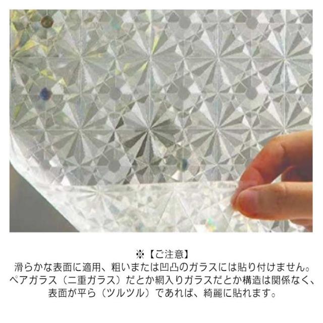 | ・眩しい光が虹色に!ガラス窓の目隠しや装飾に!手軽に貼れる「窓用フィルム」が新登場。 ・お水だけで貼れるので、誰でも簡単にできます、接着剤不要の静電気の力のタイプで、貼り付け失敗してもやり直しできます。 ・表面加工が独特で、日光が当たるとキラキラと輝くのが特徴的な商品です。 ・半透明なシートなので、室内の明るさはそのまま保持できます。目隠しの上、飾りシートとしてもよく人気があります。 ・紫外線をカットするので肌にも目にもやさしく、水で貼るタイプなので跡もつきません。 ・素材は厚みがあり耐久性に優れた高品質PVCを採用。 ・リビングや寝室の窓など、外からの視線が気になるお部屋のプライバシーの保護に。 ・デザイン性の高い柄が揃っているので、模様替えにもぴったり♪ ※【ご注意】 滑らかな表面に適用、粗いまたは凹凸のガラスには貼り付けません。 ペアガラス(二重ガラス)だとか網入りガラスだとか構造は関係なく、表面が平ら(ツルツル)であれば、綺麗に貼れます。 | |