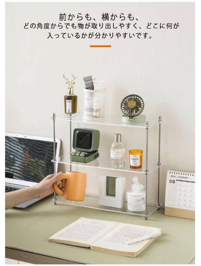 卓上 ラック 棚 デスク 収納ラック アクリル 透明 オープンラック 机上ラック デスク上 収納棚 隙間収納 奥行15cm スリム おしゃれ カウンター上 収納 卓上 小物収納 キッチンラック ランドリー トイレ 洗面所ラック デスクシェルフ 北欧 シンプル インテリア