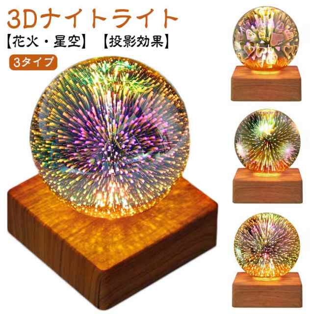 星空ライト 投影効果つき常夜灯 花火ライト ナイトライト 家庭用 プラネタリウム雰囲気を作り LEDライト ベッドサイドランプ 3Dナイトライト 子供 部屋 誕生日 プレゼント 3D花火 星空ナイトライト インテリア照明 ガラスナイトライト バレンタインデー ロマンチック