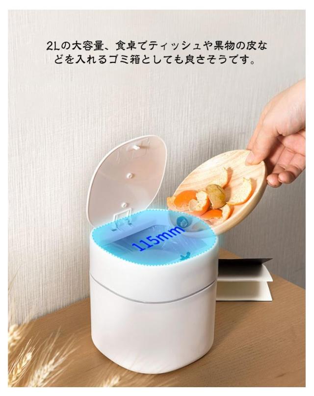 | ワンプッシュで簡単に使える卓上ゴミ箱 無駄をなくした極シンプルのデザイン、どんな部屋にも相性抜群です。 ゴミ箱はポンと押すだけで簡単に開くプッシュオープン式。 口径が広いのでパパっと楽にゴミが捨てられます。 2Lの大容量、食卓でティッシュや果物の皮などを入れるゴミ箱としても良さそうです。 耐久性に優れた素材で作られていて、しっかり丈夫で変形しにくい。 | |
