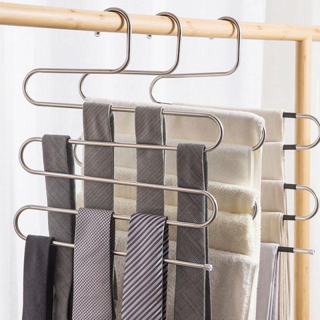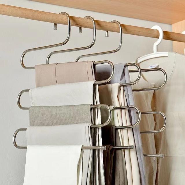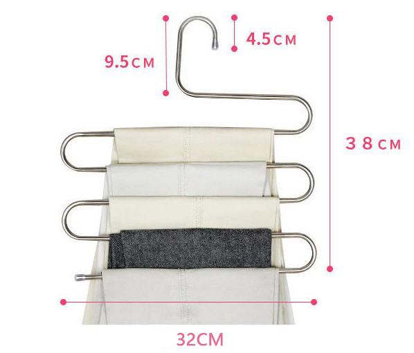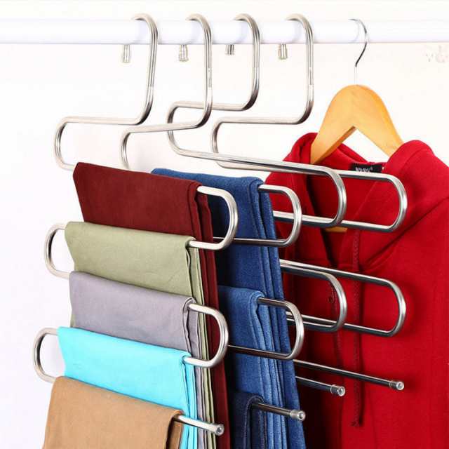 5連 ズボンハンガー 4個セット スラックスハンガー ステンレス S型 多機能 ハンガー タオルハンガー スリム 省スペース