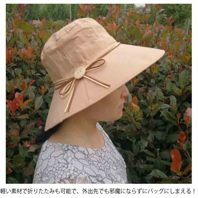 全7色選べる!帽子 レディース 夏 木製ボタン リボン風 つば広帽 折り畳める UVカット帽子 つば広 女優帽 日焼け防止 旅行 おしゃれ ファッション雑貨送料無料