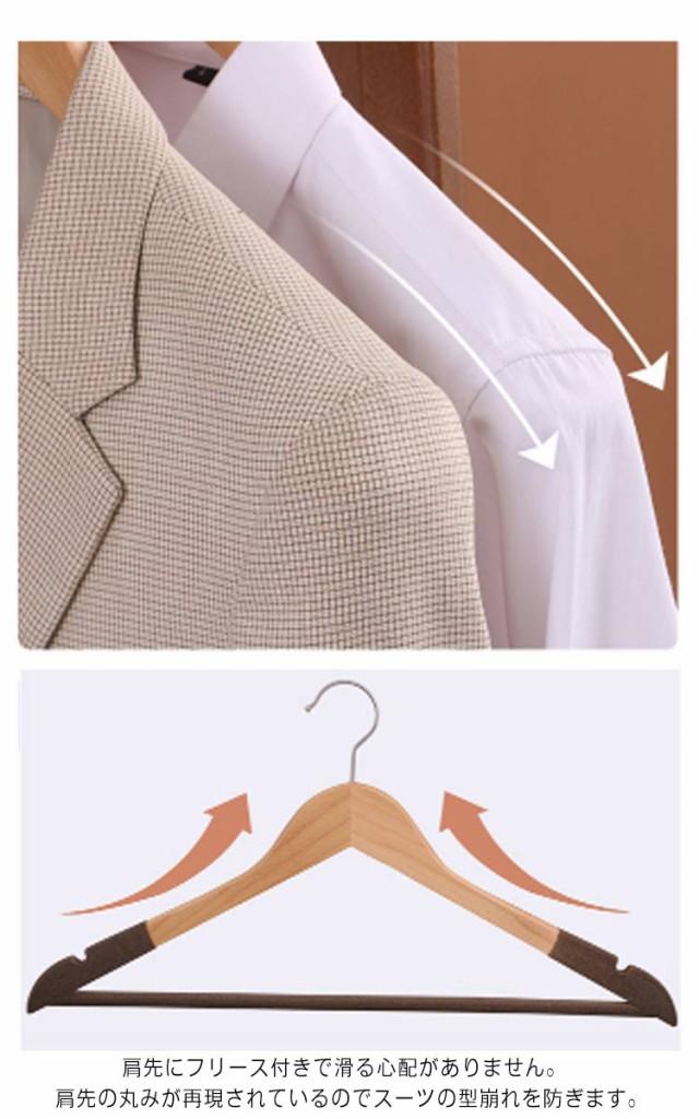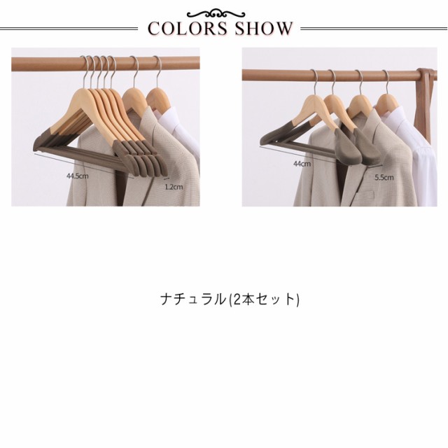 | 滑らない木製ハンガーセット、 2colors&2タイプ選べる。♪ 肩先にフリース付きで滑る心配がありません。 肩先の丸みが再現されているのでスーツの型崩れを防ぎます。 360度回転式のフックはその場に応じて方向調整でき、クローゼット空間に無駄をなくします。 同じ色と形のハンガーを揃えることでクローゼット内に統一感が生まれ整理整頓がしやすくなり、お洋服を綺麗に並べられます。 | |