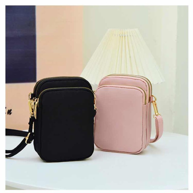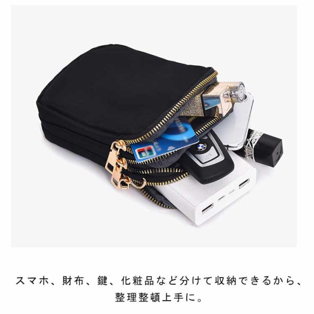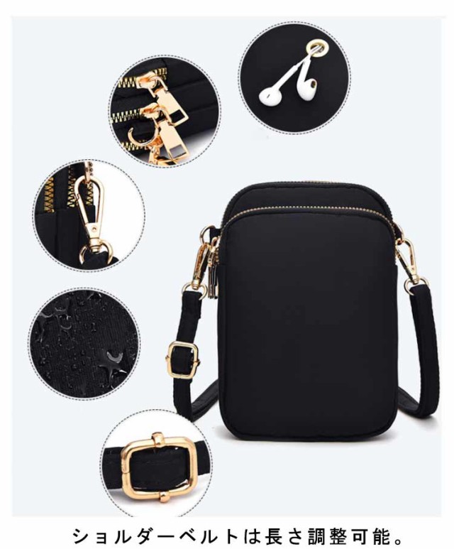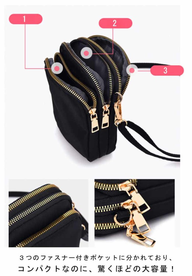 スマホポーチ 斜めがけバッグ 小さめ 3層構造 ミニショルダーバッグ スマホショルダーバッグ スマホショルダーバッグ 大容量 ミニバッグ ポシェット ナイロンバッグ はっ水 整理整頓 収納上手 縦型 スマホポシェット 大人 かわいい ファスナー付き 軽量 中学生 高校生 40代