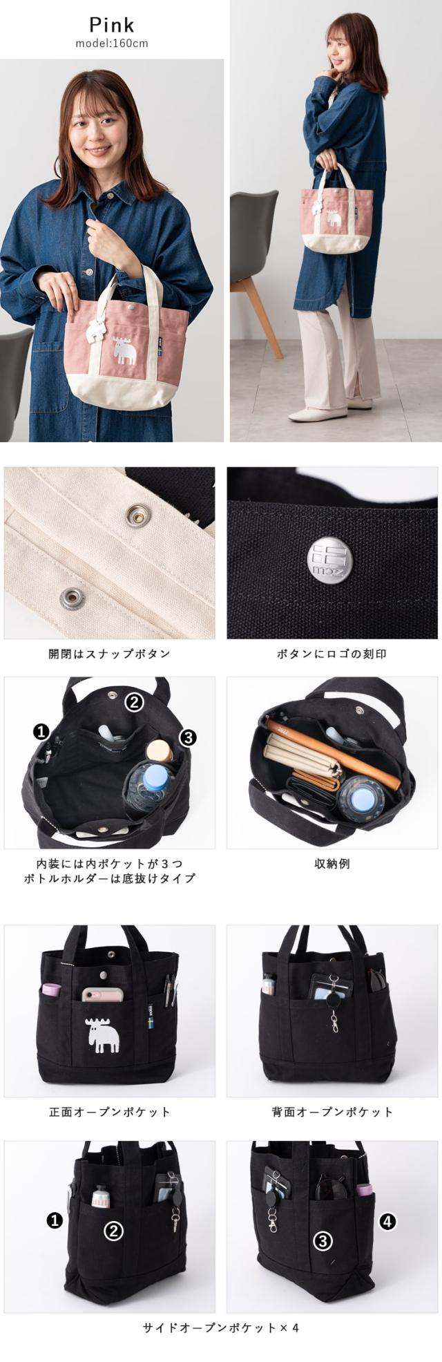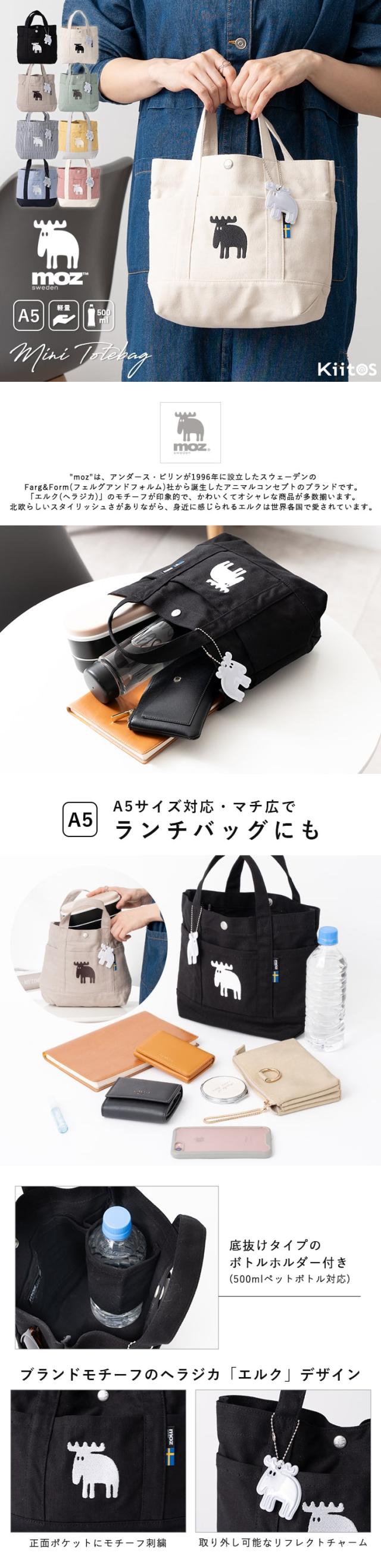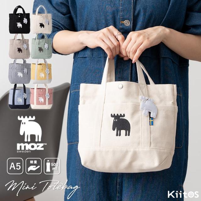 トートバッグ レディース ブランド モズ moz 小さめ ミニトート キャンバス 綿 a5 自立 ランチバッグ サブバッグ チャーム付き ペットボトルホルダー 軽量 刺繍ロゴ 北欧 おしゃれ かわいい 大人 プレゼント ギフト