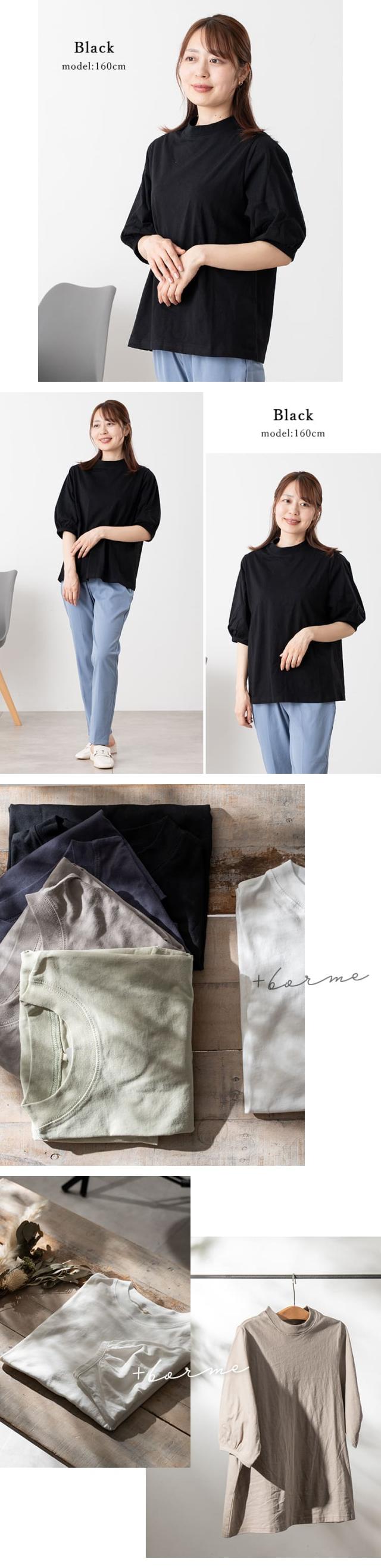 tシャツ レディース 5分袖 カットソー パフスリーブ コットン 綿100 プルオーバー 無地 UVカット uネック おしゃれ きれいめ ゆったり 春 夏 秋