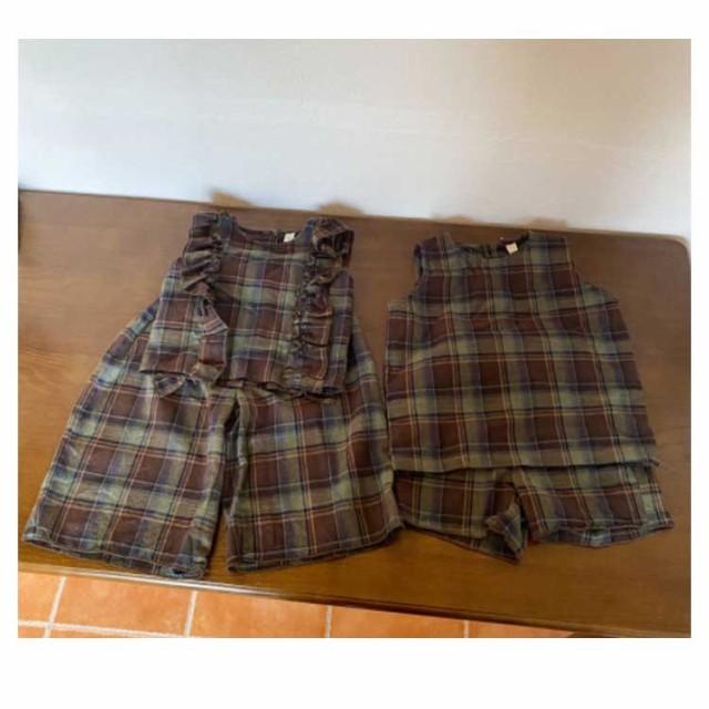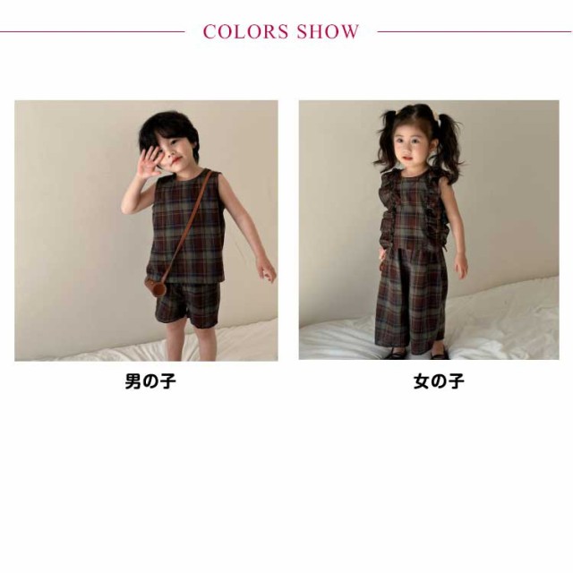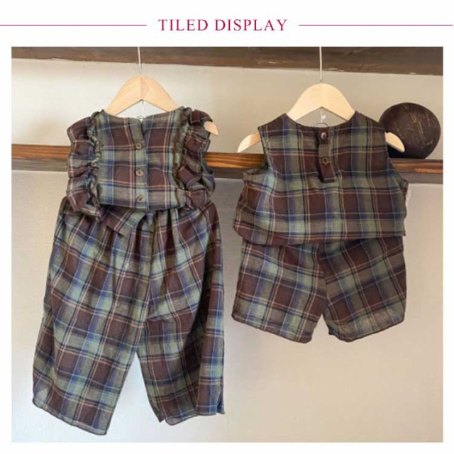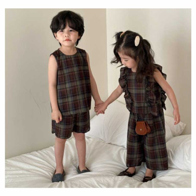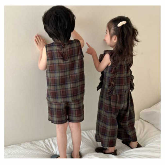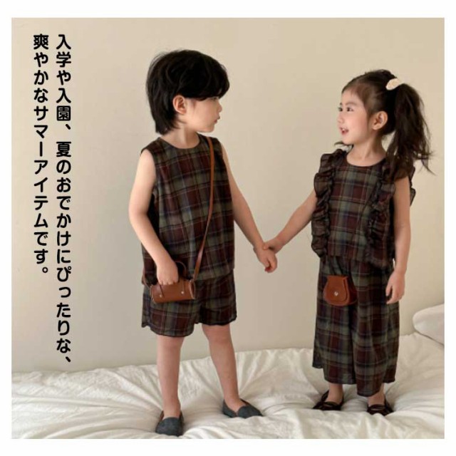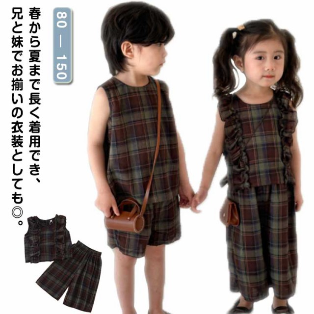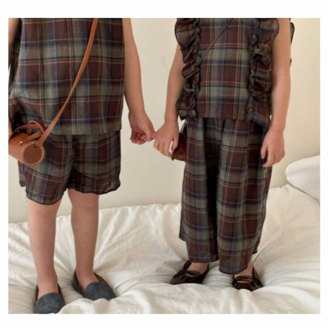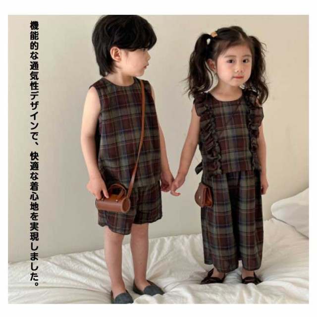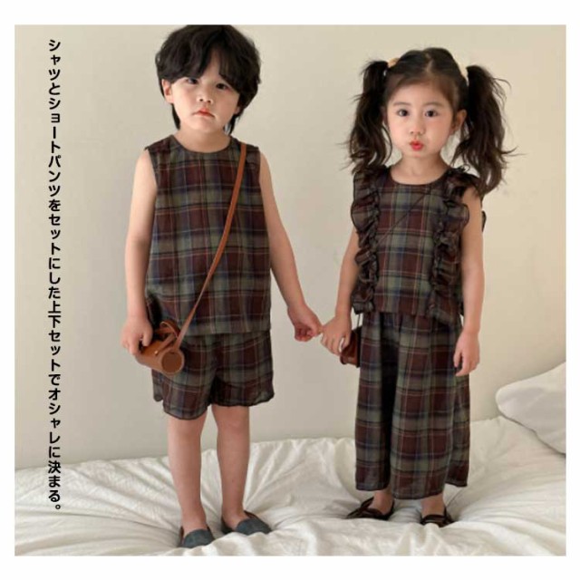 チェック柄 赤ちゃん ガウチョパンツ 上下セット セットアップ キッズ 兄妹 ジュニア 子供服 女の子 半ズボン ショートパンツ シャツ セットアップ 夏 おしゃれ 可愛い トップス ボトムス ベビー服 誕生日 プレゼント 幼稚園 小学生 学 入園 夏用
