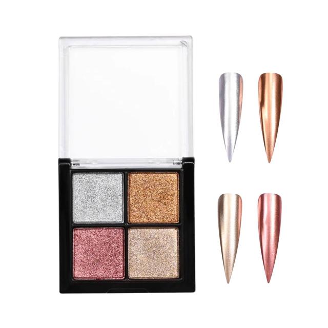 ミラーパウダー 4色パレット ネイルパウダー 固形 ミラーネイル パウダー ゴールド シルバー オーロラパウダー ジェルネイル パウダー レ