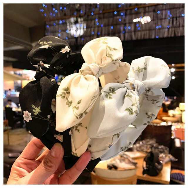 カチューシャ 花柄 3色 リボン ヘアアクセ レディース 大人可愛い ポイント消化 ブラック ホワイト ライトブルーカラー ヘアカチューシャ