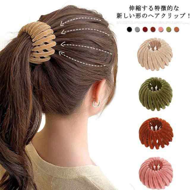 送料無料 ヘアクリップ ポニーテール お団子 7色 ヘアリング 伸縮 ヘアアレンジ ヘアアクセサリー 髪留め 髪飾り マルチクリップ ポニー
