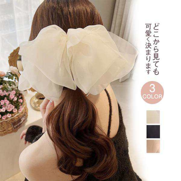 バレッタ リボンバレッタ リボン ヘアアクセサリー 結婚式 お祭り シフォン 大きめ ボリューム かわいい 大人 韓国 韓国っぽ