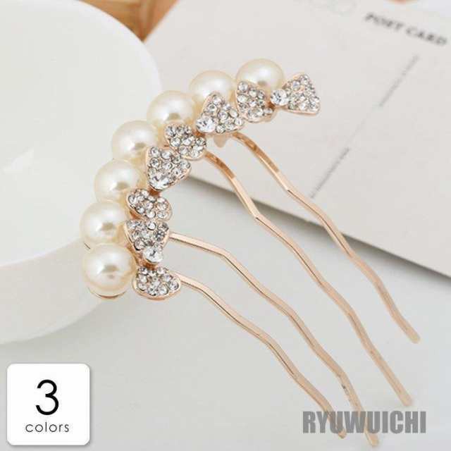コーム アクセサリー ジュエリー アクセ ヘアアクセサリー ヘアアクセ ヘアアレンジ クリップ ラインストーン ビジュー リボン ホワイト