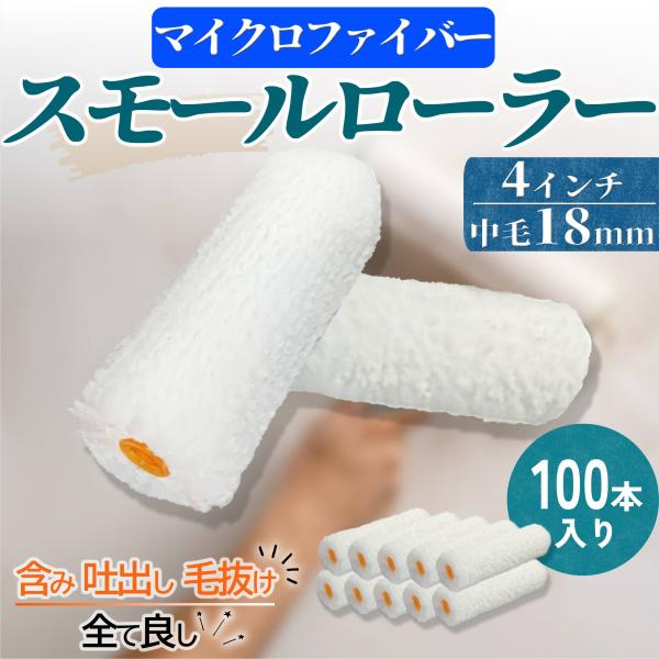塗装ローラー スモール ペイント マイクロファイバー 100本セット ペンキ 用品 4インチ 18ミリ