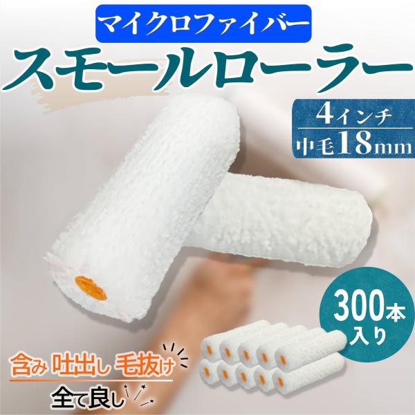 塗装ローラー スモール ペイント マイクロファイバー 300本セット ペンキ 用品 4インチ 18ミリ