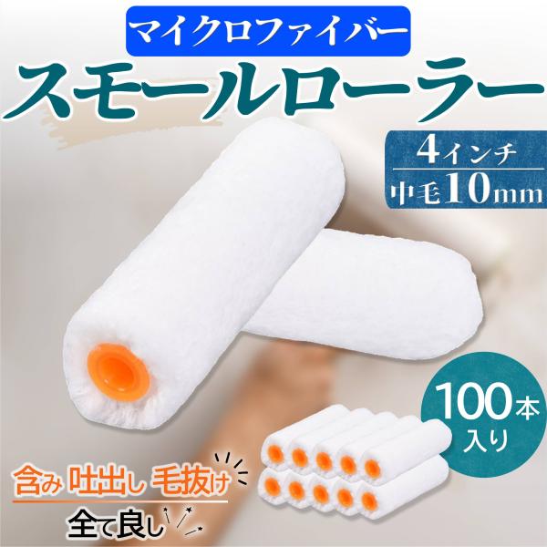 塗装ローラー スモール ペイント マイクロファイバー 100本セット ペンキ 用品 4インチ 10ミリ