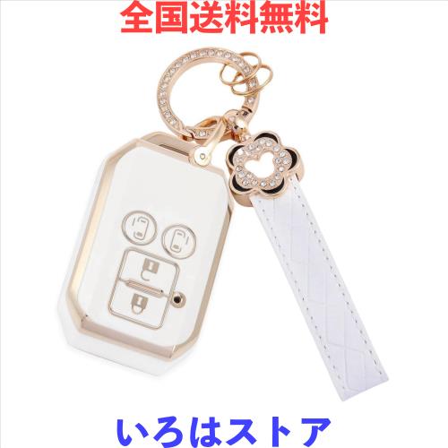 【Nacalikeey】キーケース適合ホンダ NシリーズNBOXカスタム N-VAN JF1 JF2 JF3 JF4梅の花キーケース適合ホンダ N-BOX NBOX N-ONE N-WGN N-ワゴン スマートさくらかわいいのキーケース(4ボタン,ホワイト)