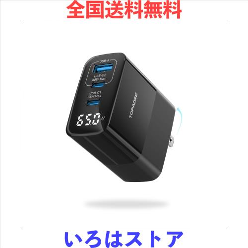 TOPADRE 急速充電器 65w Type-C PD充電器 [超低温/折りたたみ式プラグ/LEDディスプレイ搭載/GaNIII技術] USB-C×2 & USB-A 携帯タイプc充