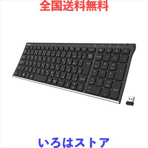 Arteck HW193 2.4G ワイヤレスキーボード日本語配列 無線ステンレススチール 軽量 フルサイズキーボード テンキー付き コンピューター、