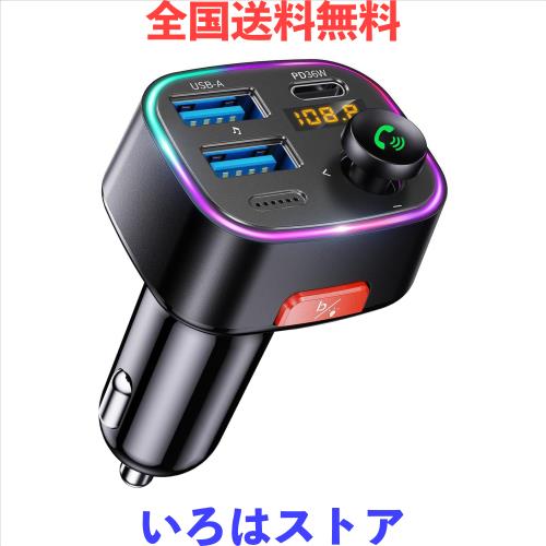 FMトランスミッター【Bluetooth5.4新登場】HUNDRUP 車載FMトランスミッター PD 36W+QC3.0急速充電 車載充電器 ハンズフリー通話 Bluetoot