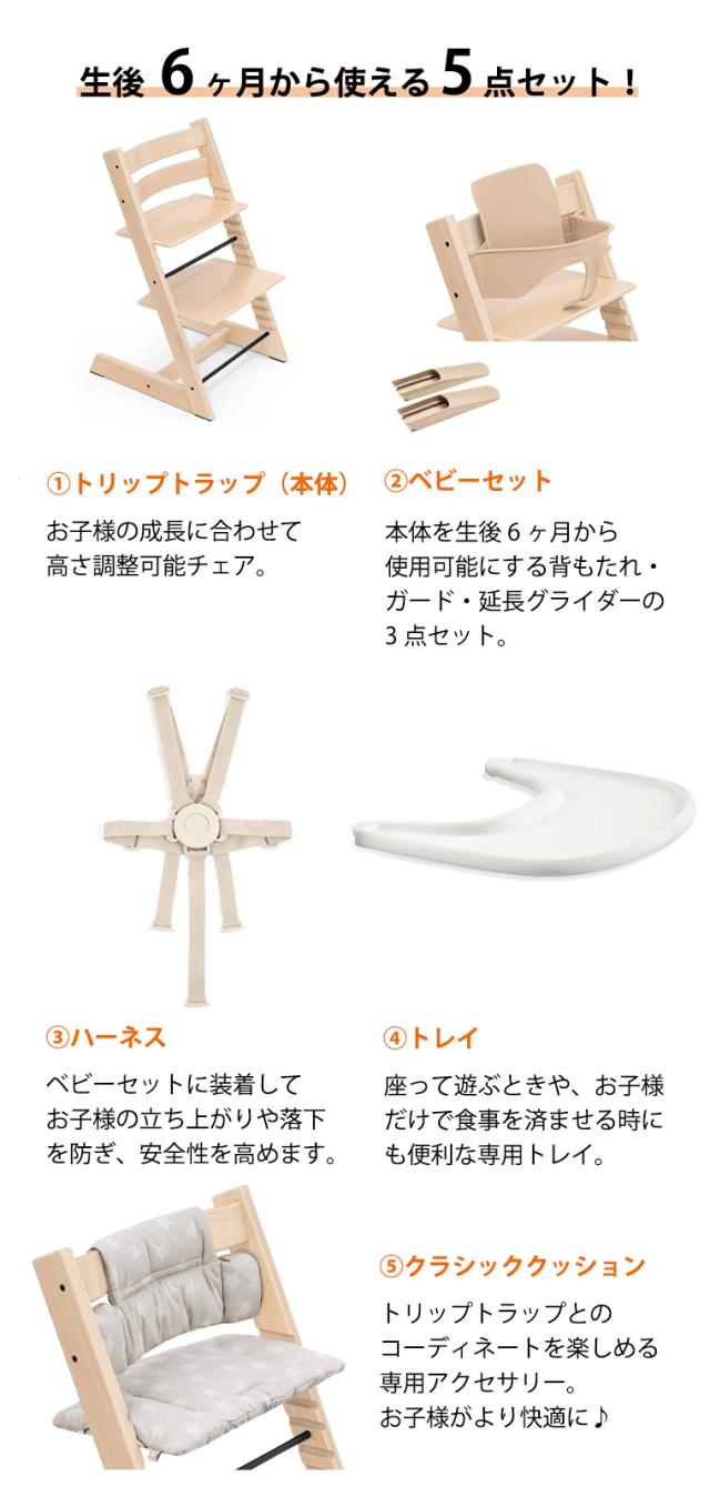 【正規販売店】 ストッケ トリップトラップ 5点 バンドル セット ハイチェア ベビーセット ハーネス トレイ クッション 離乳食 木製 北欧 イス ベビー 正規品 7年保証 STOKKE TRIPP TRAPP ベビーチェア ダイニングチェア 出産祝い 出産準備 おしゃれ 子ども 6ヶ月から