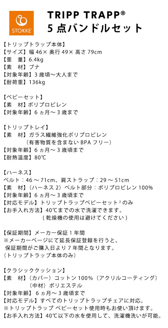 ※メーカーページにて延長保証登録を行うと、保証期限がご購入日より7年間となります。(トリップトラップ本体のみ)