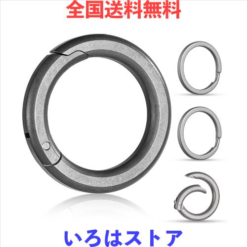 [TISUR] 丸型 カラビナ キーホルダー小型 おしゃれ 車キーリング 鍵 収納 (チタン グレー丸型カラビナ+チタンキーリン2個)