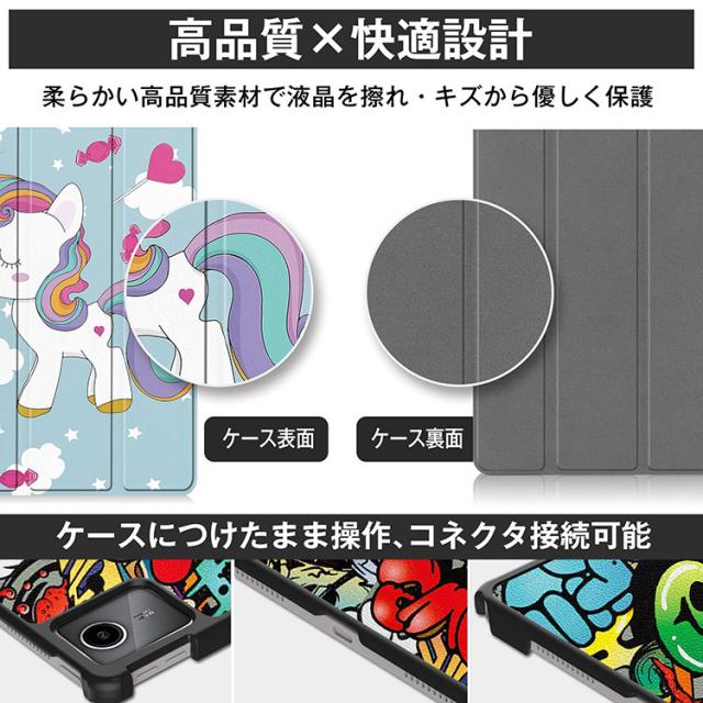 ■タブレットPCの薄さと重さを損なわないよう薄型・軽量設計のPUレザーケース!表は汚れや傷に強い良質PUレザー、裏地は触り心地の良い柔らかい素材(マイクロファイバー)を使用しており、タブレットPCを優しく守ってくれます。 ■カメラ撮影や各種ボタン操作、イヤホンの差し込み等はケースを閉じたままでも可能ですので、使い勝手も抜群です。 ■動画視聴、タイピングや読書に便利な2パターンスタンド機能がついておりますのでお好みの角度で楽しむことができます。 ■ケースの開閉はマグネット式なので、片手で簡単に開閉できます。また蓋がパカパカと開いててしまうことがありません。 ■オートスリープ機能付で無駄なバッテリー消費を防ぎます。 |
