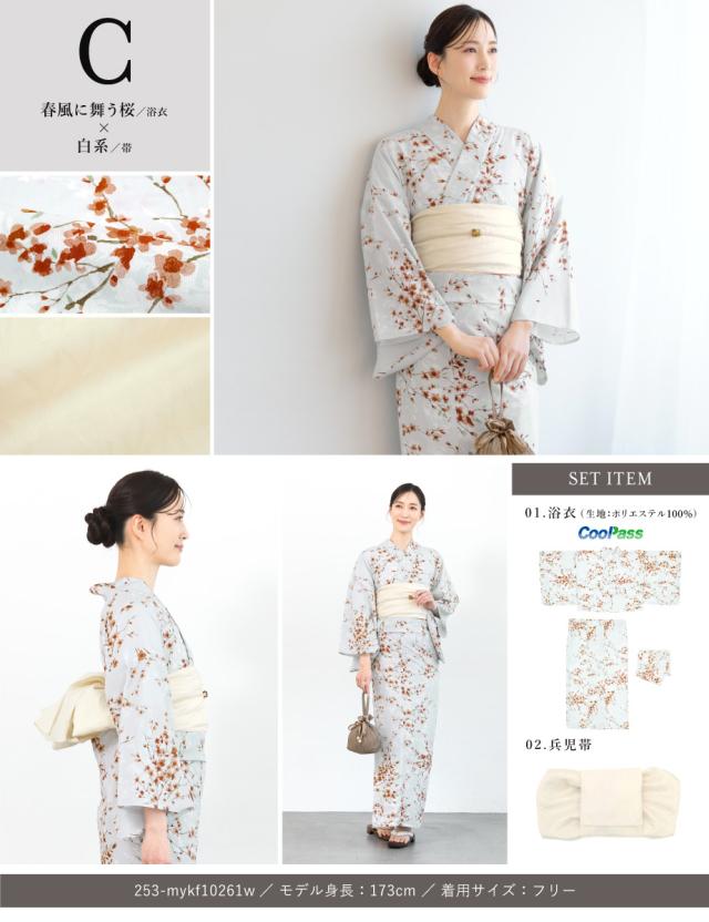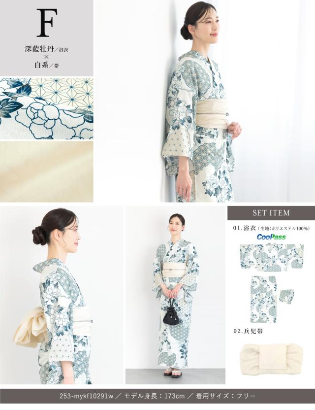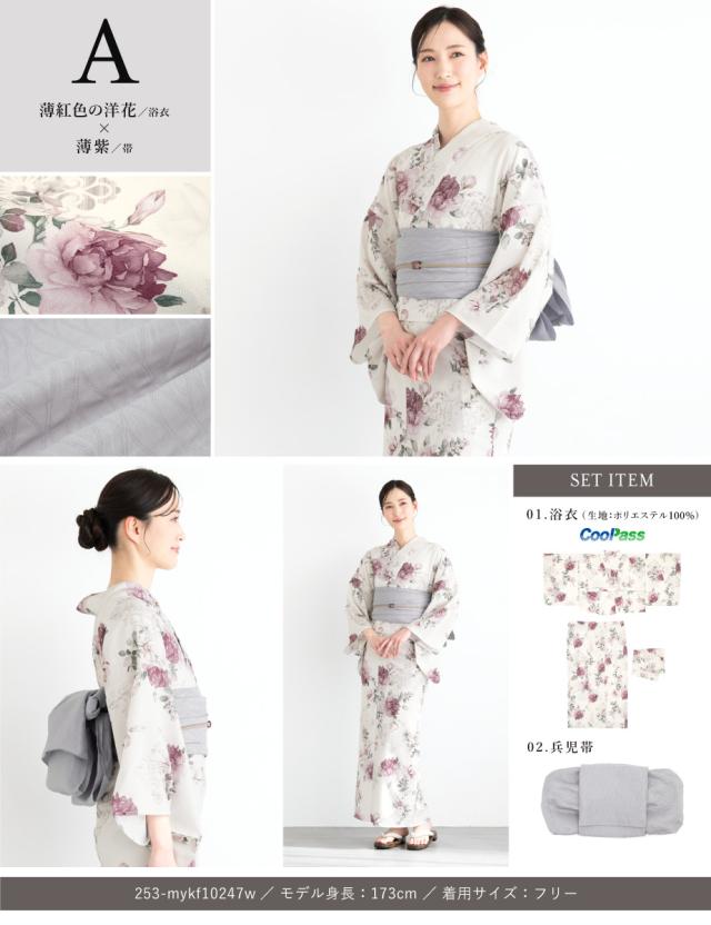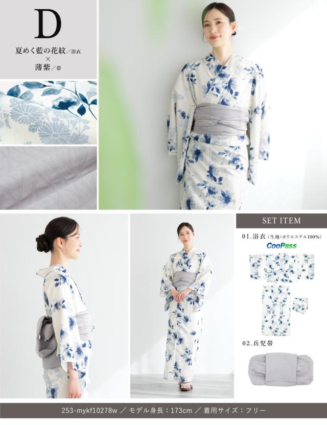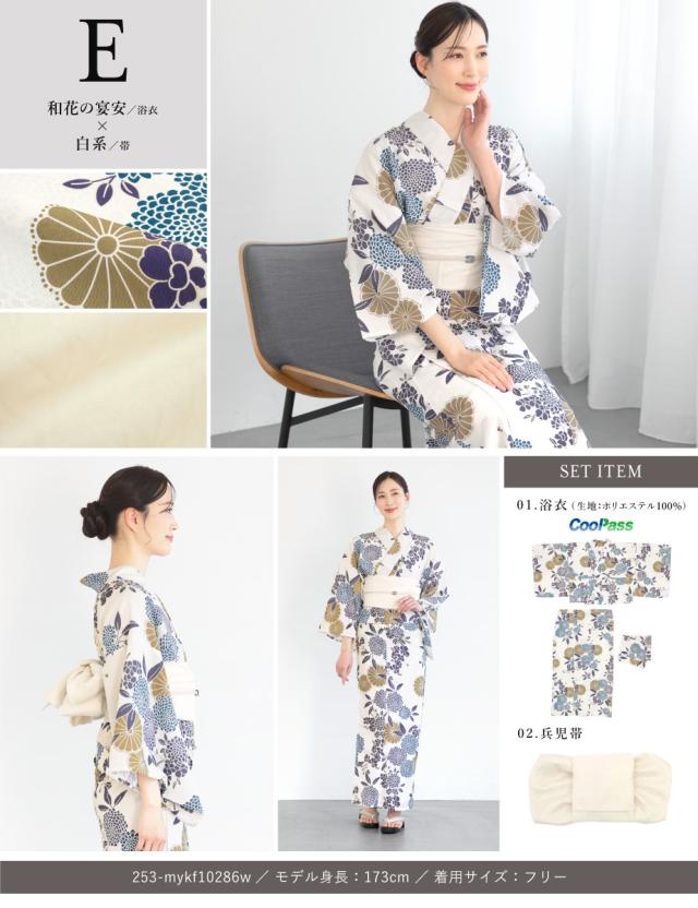 浴衣 セット レディース 二部式 セパレート 浴衣セット 兵児帯 2025 floro 簡単 悩まない 誰でも 涼しい コーディネート済み 白 黒 青 ピンク グレー 30代 40代 50代 フリー 送料無料