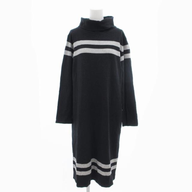 【中古】アニエスベー agnes b. ニットワンピース ひざ丈 タートルネック ボーダー 長袖 3 黒 ブラック 白