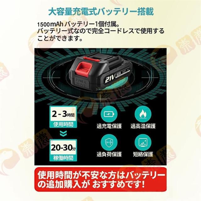 ※ この製品は21V、24Vのバッテリーが互換性があり、出荷時にはこの2種類のバッテリーのうちの1個をランダムに配送させていただきます。