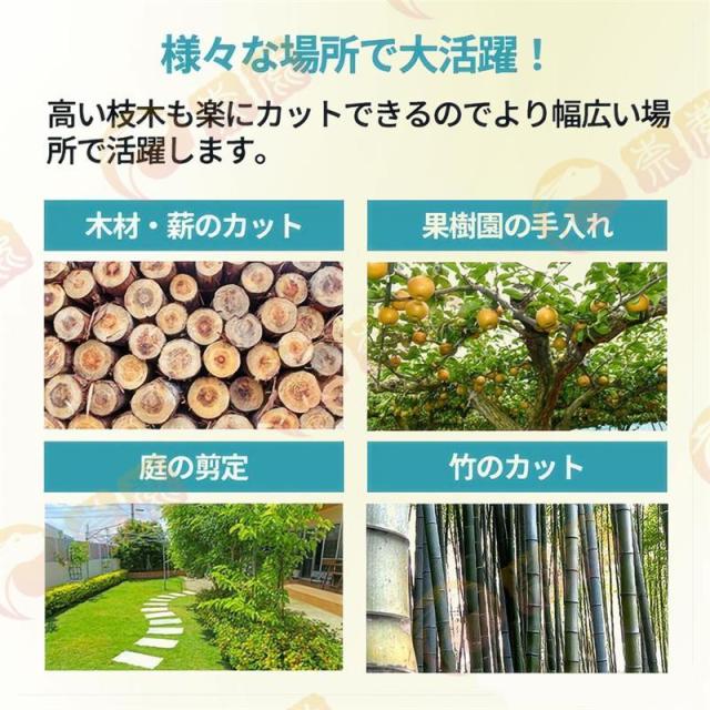 電気のこぎりの適用範囲が広く、果樹園の側枝切断、家庭用薪、竹切り、苗木切り、都市緑化、DIY木製品プロジェクトなどに広く応用されている。高い枝を切断したり、花園の木を切断したりするなど、家庭で使用するのにも適しています。