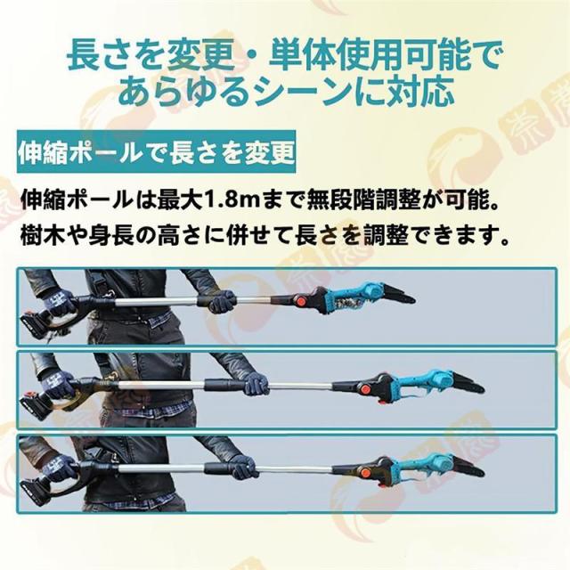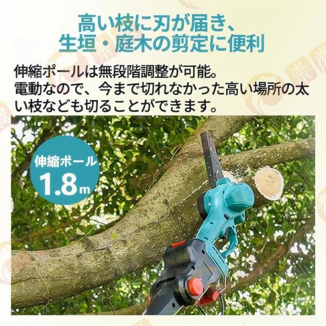 チェーンソー 高枝切り 充電式 マキタ バッテリー互換 軽量 130-200cm伸縮可能 コードレス 長さ調節 ポールチェーンソー 枝切り 軽量 高速切断 木工切断 家庭用