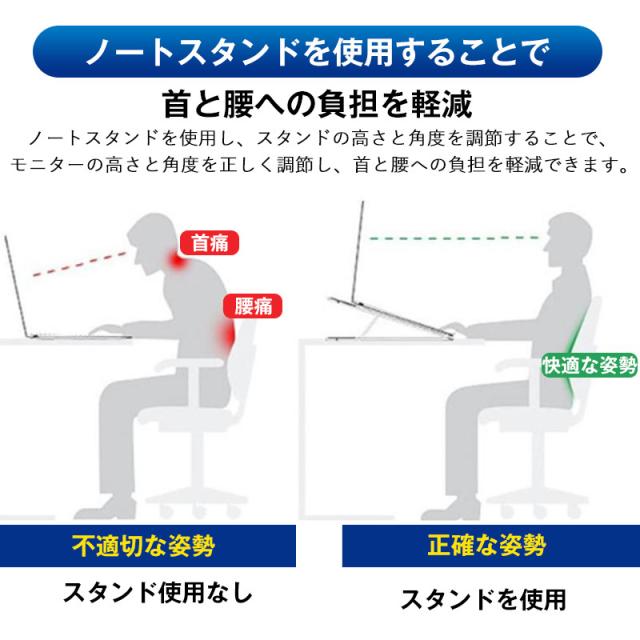 ◇机上ノートPCの位置をあなたにあった角度や高さに設定できます。