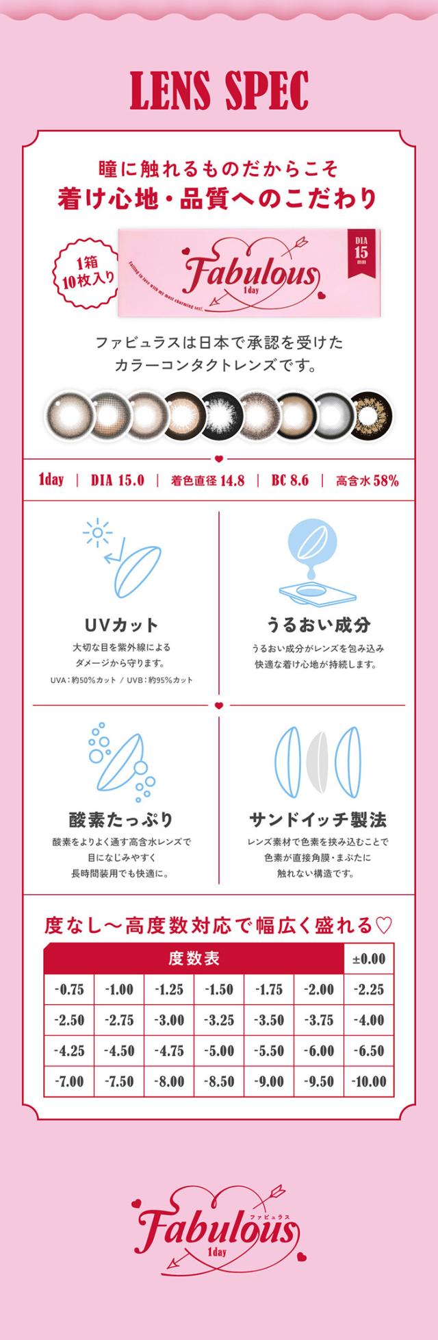 カラコン ワンデー 度あり 度なし 鈴木愛理 ファビュラス FABULOUS 1箱1枚入り DIA15.0mm BC8.6 ブラウン ブラック グレー ナチュラル系 ハーフ 盛れる 大きめ フチあり フチなし UVカット