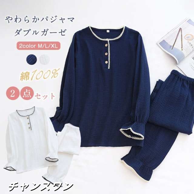 ギフトにも最適♪ 優しい肌触り♪ ガーゼパジャマ M L LL ダブルガーゼ パジャマ レディース 婦人 綿 コットン ガーゼパジャマ 前開き