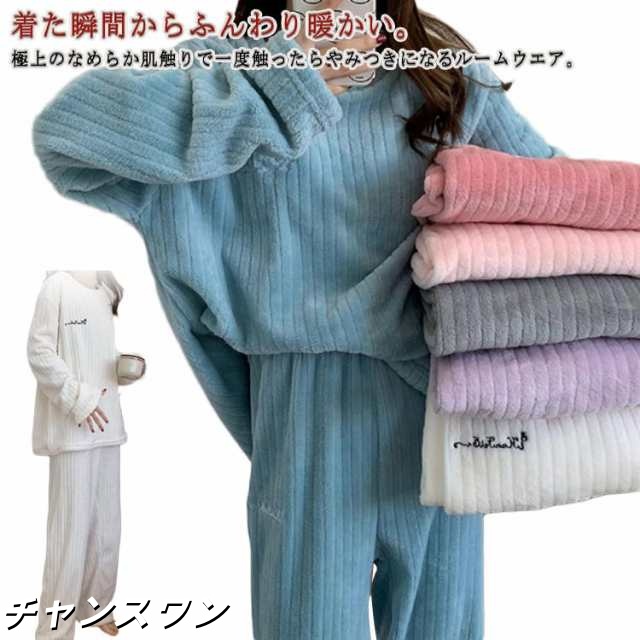 送料無料 セットアップ もこもこ レディース ルームウェア 部屋着 パジャマ 上下セット あったか 可愛い 暖かい ふわふわ 長袖 ロングパンツ パジャマ ギフト 寝間着 リラックスウェア プレゼント セット パジャマ もこもこ 温活 寝巻き